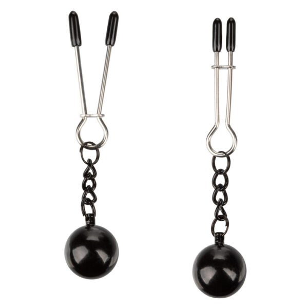 Tweezer-style nipple clamps give you the right amount of squeeze for an incredible nipple play experience. Adjust the tweezers to exactly the pressure you desire, and let the weights pull and tug for even more pleasure.